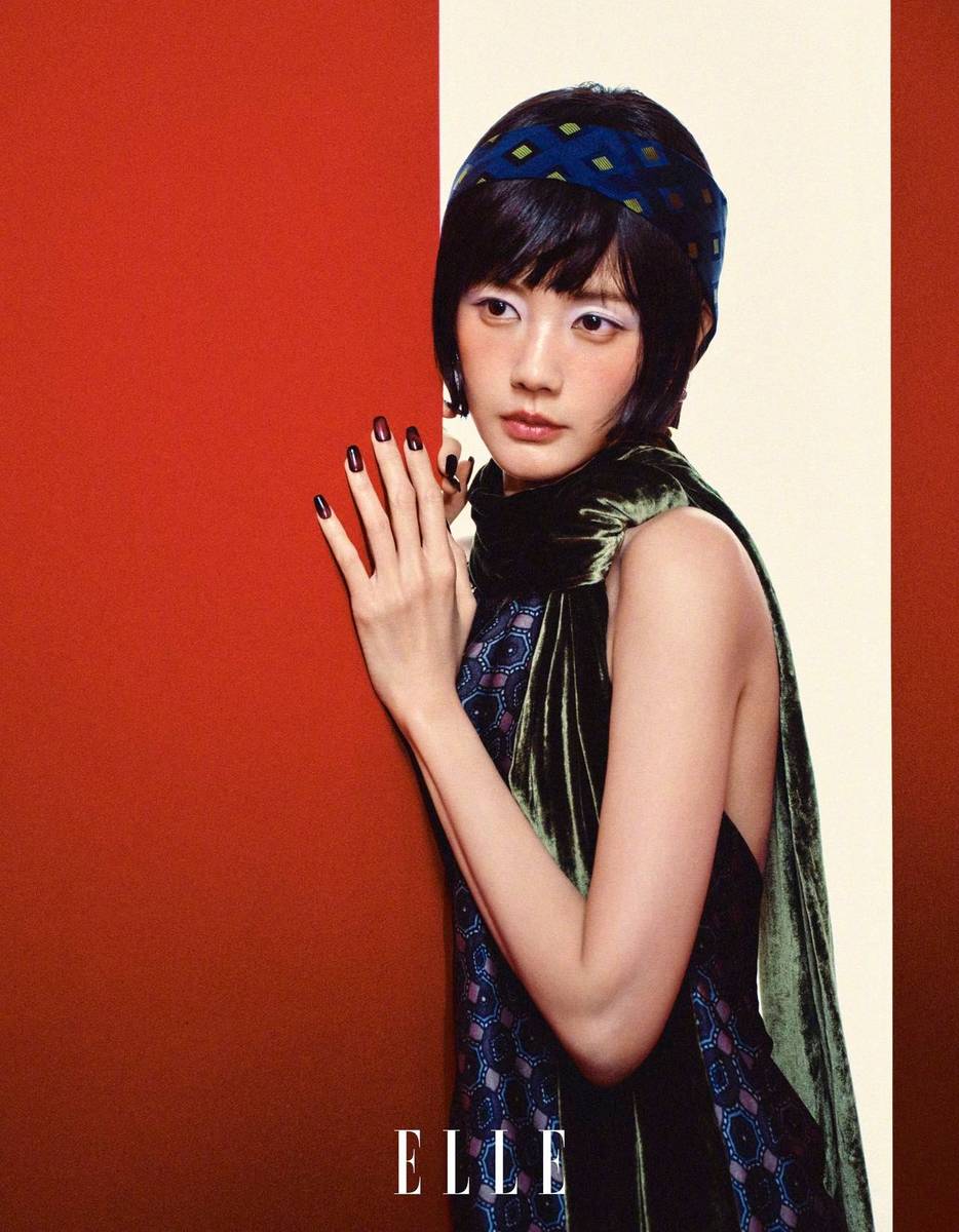 短发是这场造型的灵魂所在,绝非简单的长度缩减。她选择的 “及下颌一刀切” 短发,发尾微微内扣形成温柔锐角,恰好卡在少女感与都市感的临界点。蜜糖棕的发色渲染下,发丝层次分明,既衬得肤色愈发白皙,又让偏分设计勾勒出精致的颅顶线条。相较于长发时期《半妖倾城》中聂倾城的温婉、《射雕英雄传》黄蓉的灵动,这款短发更显锋芒:眉骨与下颌的立体度被利落发线强调,眼神从 “小鹿式氤氲” 变为清亮有神,行走间发梢轻扬,每一步都透着不费力的俏皮。造型师透露,为找到最佳长度,团队曾反复模拟 27 种光影效果,这份精准让短发成为她打破 “甜妹标签” 的视觉宣言。