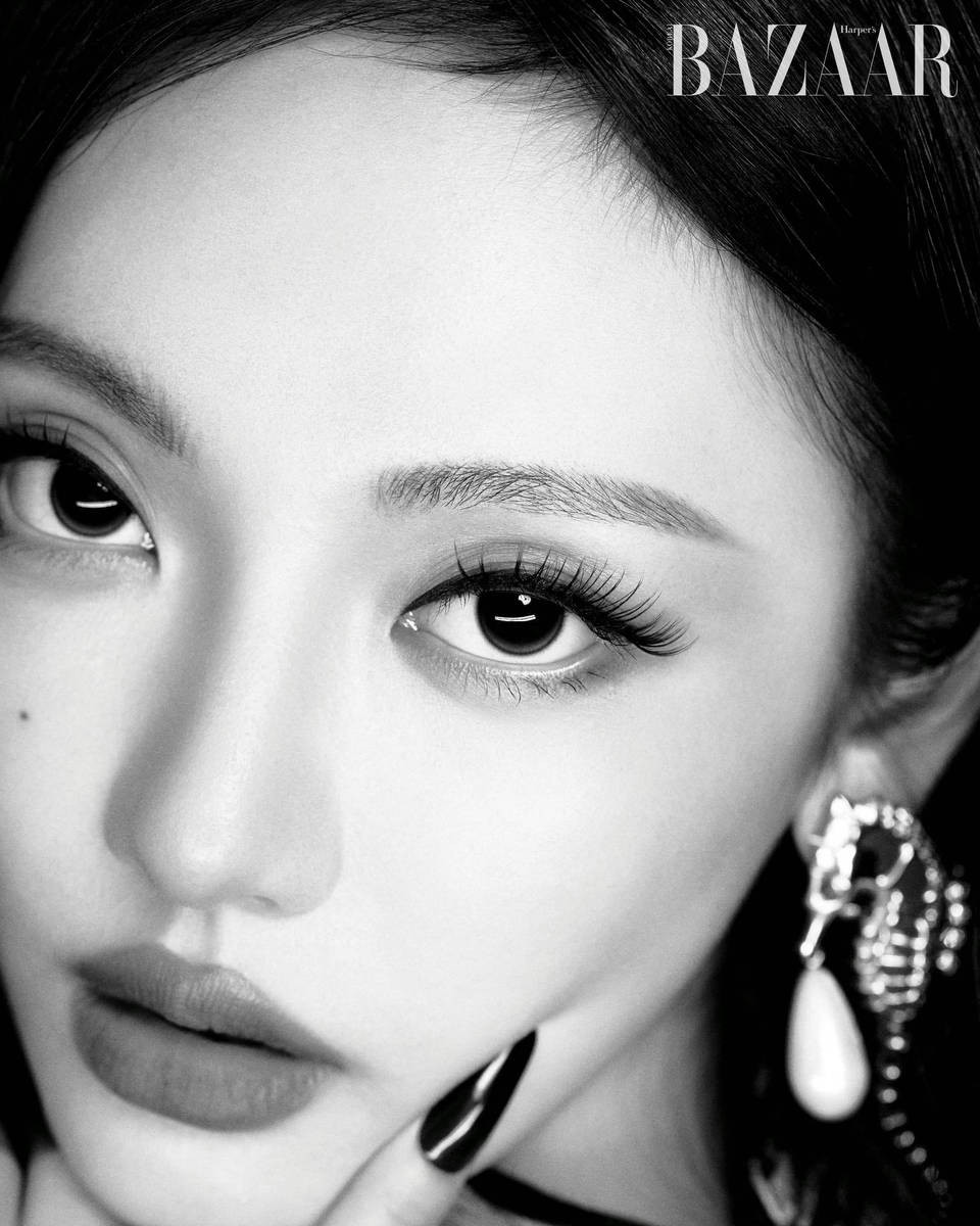 复古名伶造型是她最具标志性的画报符号。《W Korea》封面中,一袭火焰般炽烈的红裙勾勒出曼妙身姿,搭配宝格丽珠宝的她宛如从神话中走出的美神维纳斯。慵懒垂落的波浪卷发泛着柔润光泽,特色腮红点缀下的面容,既有复古画报的精致感,又藏着傲娇小猫般的灵动,这组大片不仅创下该刊 2023 年非团体封面最高销量纪录,更引发全球社交媒体的模仿热潮。