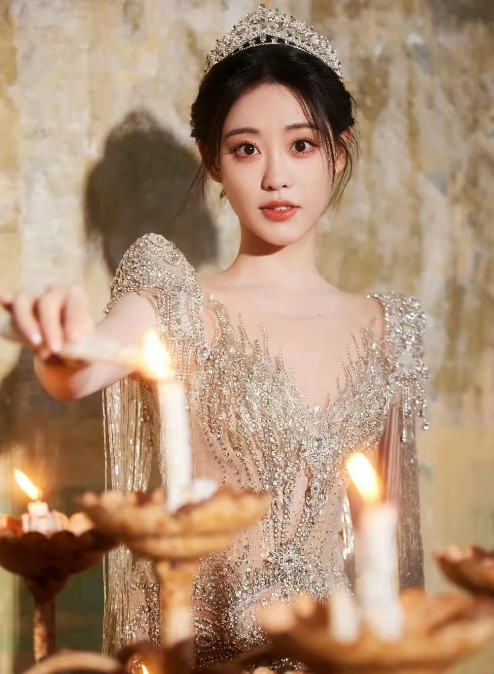 祝绪丹的海上婚纱造型,标志着她从“角色型演员”到“风格型艺人”的重要转变。回顾其形象轨迹:2017年《三生三世十里桃花》中的玄女,以厚重眼妆和凌厉眉形(眉峰角度120度)塑造反派气场,妆容重点在“攻击性”;2020年《琉璃》中褚璇玑的灵动少女妆造,以杏色腮红和同色系唇妆为主,强调“元气感”;2022年《狐妖小红娘·月红篇》中涂山雅雅的冷艳造型,则采用姨妈色口红和银色眼饰,突出“距离感”;2025年《乘风2025》舞台上,她尝试唱跳时多采用高马尾、亮片装的活力造型,主打“动感”。而此次婚纱大片则实现了“柔与力的平衡”——妆容上弱化眼妆,仅用奶茶色眼影强调眼窝深邃度,眉峰角度调整为150度增加柔和感,搭配雾面豆沙唇,凸显“清水出芙蓉”的质感;站姿上保持背部挺直的职业习惯(这是她多年舞蹈训练形成的体态),但通过微微侧头、抬手轻扶头纱的动作注入柔美,这种“克制的优雅”恰是她近年风格的核心标签。相较于此前角色造型的“极致化”,此次婚纱造型更贴近她本人的性格特质——温和中带着坚定。