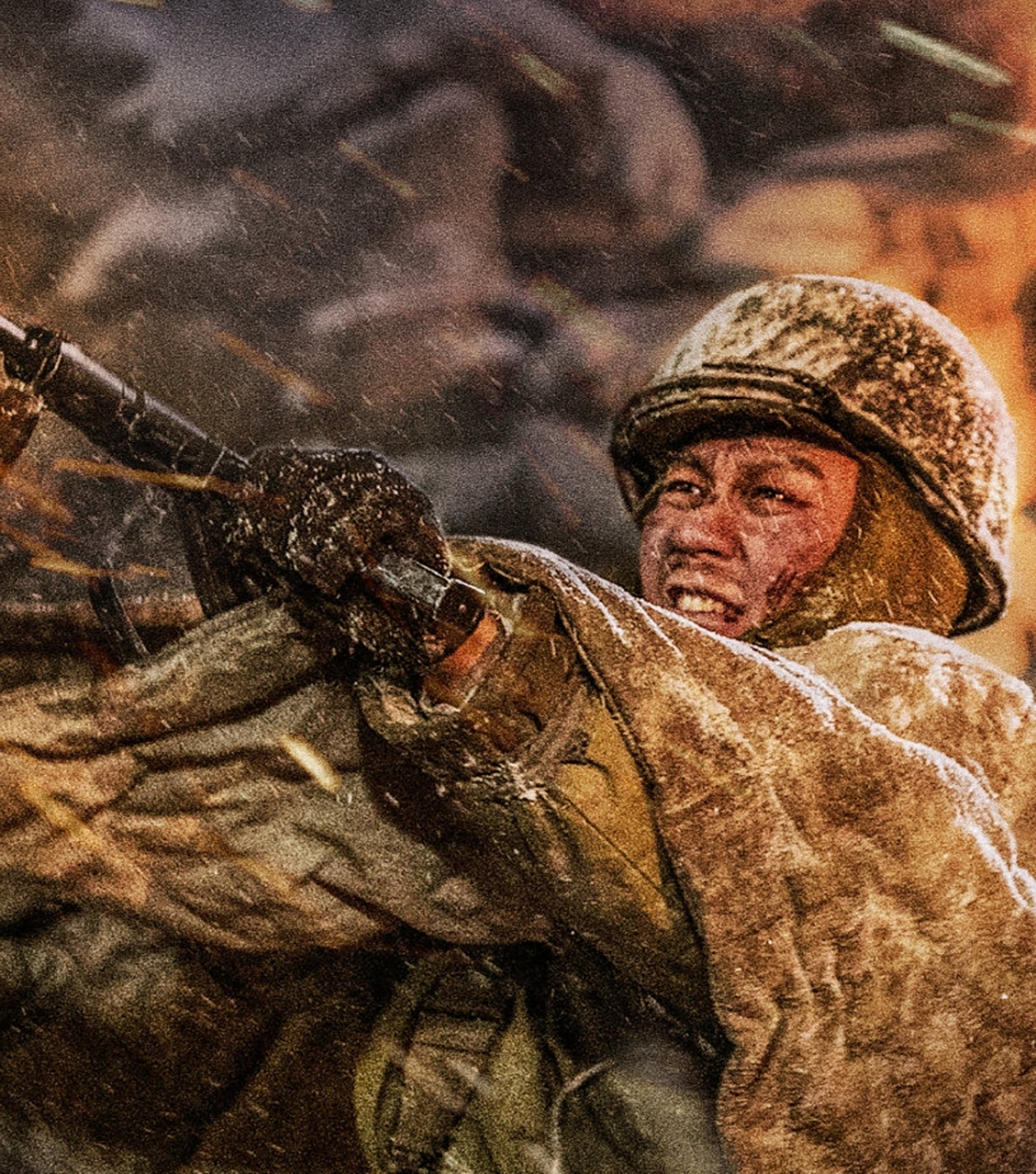 影片对英雄“成长性”的刻画,是群像叙事的点睛之笔。伍万里的转变最具代表性:初入部队时,他因好奇偷拿手榴弹,被伍千里严厉批评;第一次上战场时,他因恐惧不敢开枪;而在经历战友牺牲后,他逐渐明白“当兵不是为了耍酷,而是为了保护更多人”,最终成长为能独当一面的战士。这种成长不是“突然顿悟”,而是通过“目睹雷公牺牲”“与美军近身搏斗”等一系列事件逐步完成,符合人物心理发展逻辑。同样,梅生从“文人”到“战士”的转变也刻画得细腻可信——他随身携带女儿的照片,在战斗间隙会拿出课本翻看,这些细节展现了他“为人父、为人师”的身份,而在关键时刻,他又能毫不犹豫地拿起武器冲锋,这种“多重身份的叠加”让英雄形象更立体。